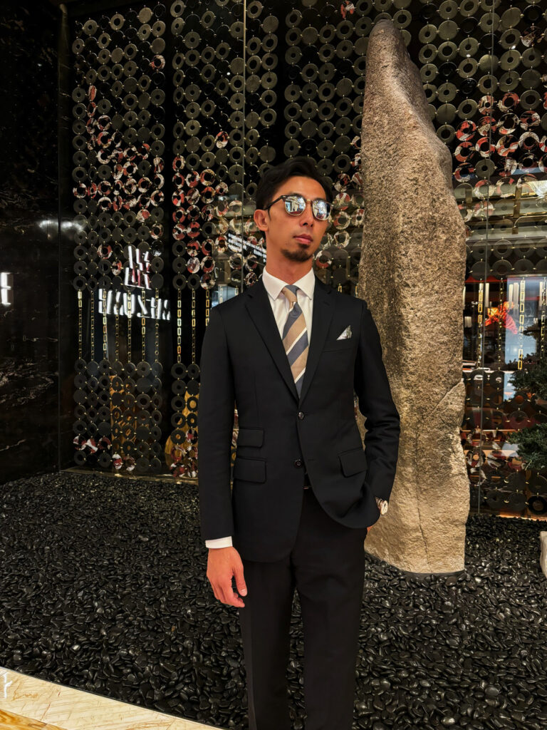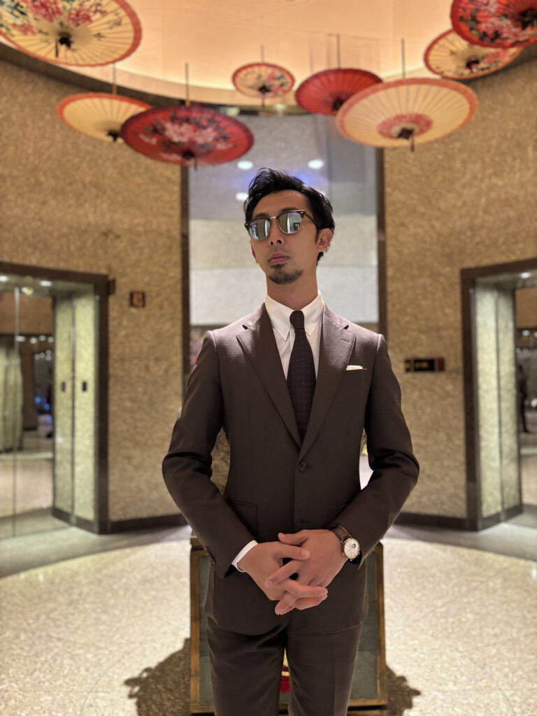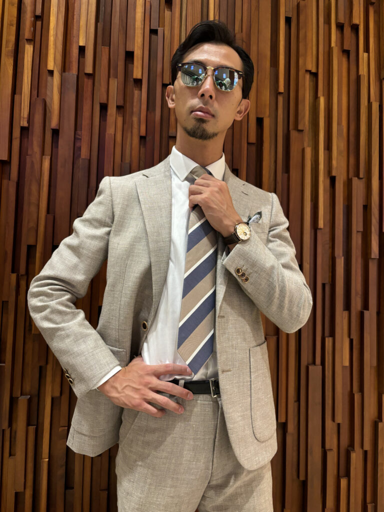 シャツがダサいと、折角オーダーしたスーツの魅力が半減してしまいます。もしご予算に合うようでしたらオーダーシャツも合わせてお考えいただけると、より魅力を引き出せるのでオススメしております。